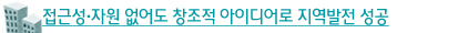 ‘나비축제’라는 창조적 발상으로 성공을 거둔 전남 함평군은 주어진 자원이 부족한 지역에서 벤치마킹할 수 있는 경우다. 함평군청 문화관광과 오금열 과장은 “함평은 10년 전만 해도 천연자원, 관광자원, 산업자원이 전혀 없는 ‘3무(無)’지역이었다”며 “이런 절박한 상황에서 생각해낸 게 나비축제였다”고 말했다. 함평은 친환경 이미지의 나비축제를 시작할 때 제주에서 나비를 공수해왔다.