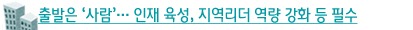 전국 86개 군 지역 대부분은 두뇌 유출과 인구 감소로 어려움을 겪고 있다. 이런 상황에서 지역 스스로의 역량을 통해 부족한 자원의 한계를 극복하려는 노력은 힘에 부칠 수밖에 없다. 따라서 경쟁력이 뒤처지는 지역은 인재 육성, 지역리더 역량 강화 등 체계적인 인적자원 개발 전략이 필수적이다.
